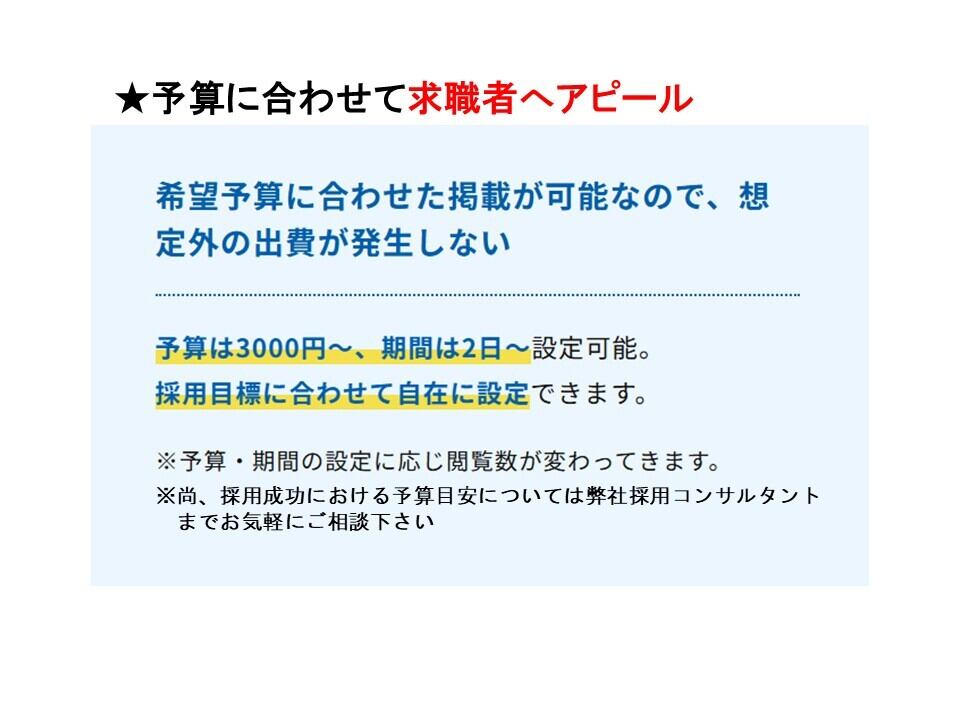 ・希望予算に合わせた掲載が可能なので、想定外の出費が発生しない